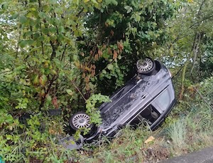 Automobile che, dopo aver urtato il cordolo che delimita la carreggiata, ha divelto la recinzione che separa l’arteria dal terreno confinante, e si è ribaltata nella scarpata. La fitta vegetazione ha comunque evitato che la carambola della 500 proseguisse ulteriormente. Per fortuna per la ragazza al volante, unica occupante la vettura, le conseguenze non sono state gravi. Ha solo riportato una contusione ad un braccio.