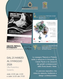 Nasce il progetto culturale “Memoria e Materia” promosso dalla Fondazione Sorrento con l’obiettivo di valorizzare il patrimonio artistico e fotografico contemporaneo. Dal 21 marzo al 3 maggio 2026, la splendida location di Villa Fiorentino ospita un doppio evento: la mostra fotografica “Oreste Pipolo Fotografo: Dai matrimoni alla sua Napoli”, un percorso visivo tra memoria, tradizione e paesaggio urbano, e l’esposizione “Codice RJW / Memoria Futura”, che consente di compiere un viaggio nel mondo del gioiello contemporaneo tra arte, sperimentazione e ricerca.