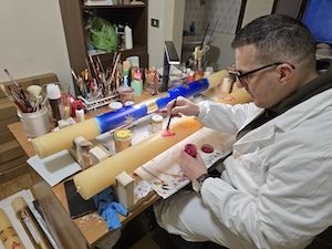 Le sue creazioni sono oggi richieste in tutta Italia e all’estero: commissioni sono arrivate anche dalla Turchia, dove due anni fa un suo cero è stato collocato in una cattedrale, e presto una nuova opera partirà per Parigi. Padre Carlo, non realizza solo ceri pasquali, ma anche ceri da mensa per l’altare e rosari artigianali.